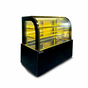 Tủ trưng bày bánh kem kính cong có thiết kế đẹp mắt với mặt kính cong, tạo nên sự thu hút cho khách hàng. Tủ này thường có kích thước lớn hơn, cho phép trưng bày nhiều bánh kem và tạo cảm giác sang trọng trong cửa hàng bánh kem.